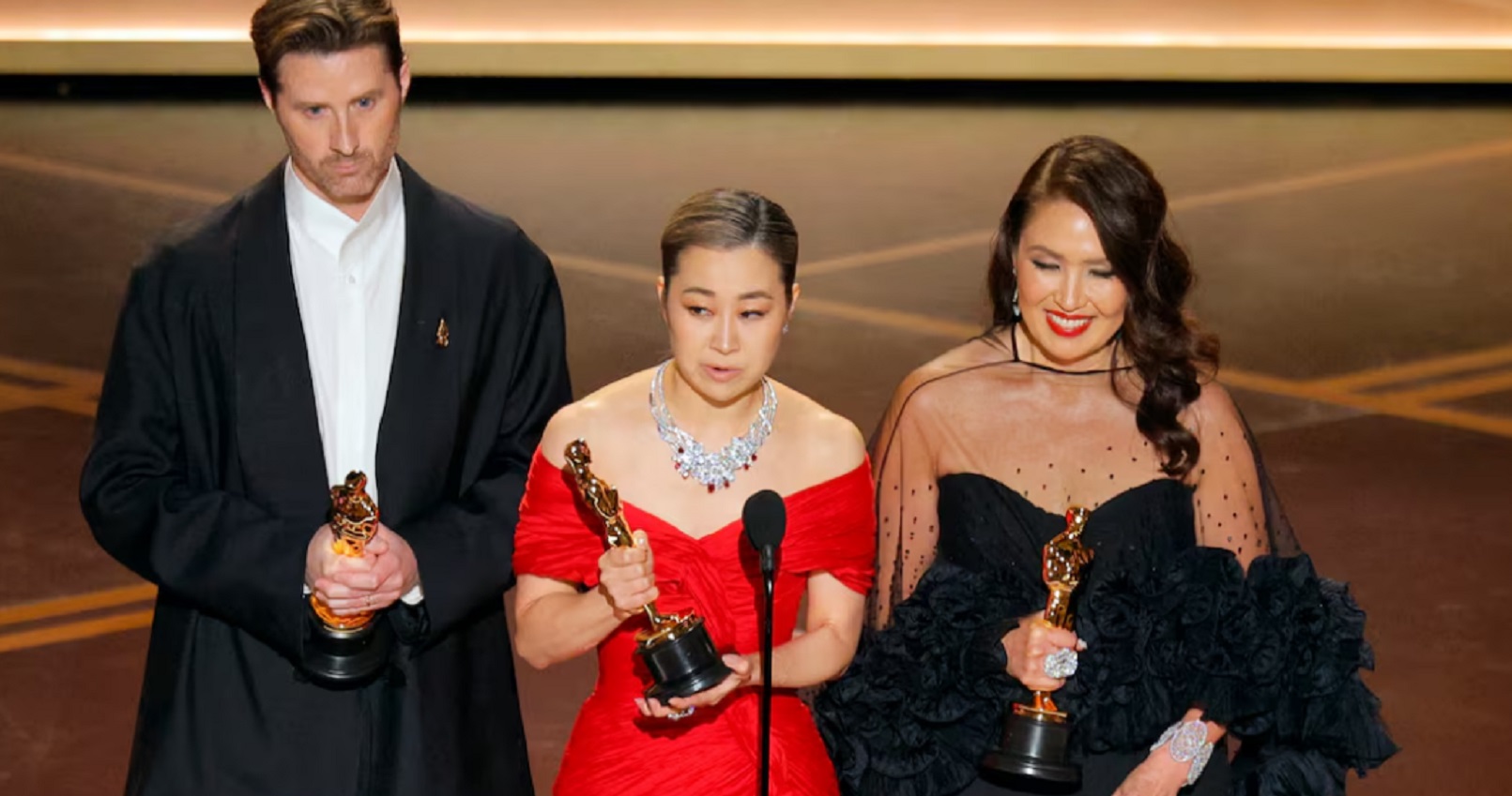 « Merci à l’Académie et à tous les fans qui nous ont amenés ici, et à ceux d’entre vous qui me ressemblent », a déclaré Kang depuis la scène.